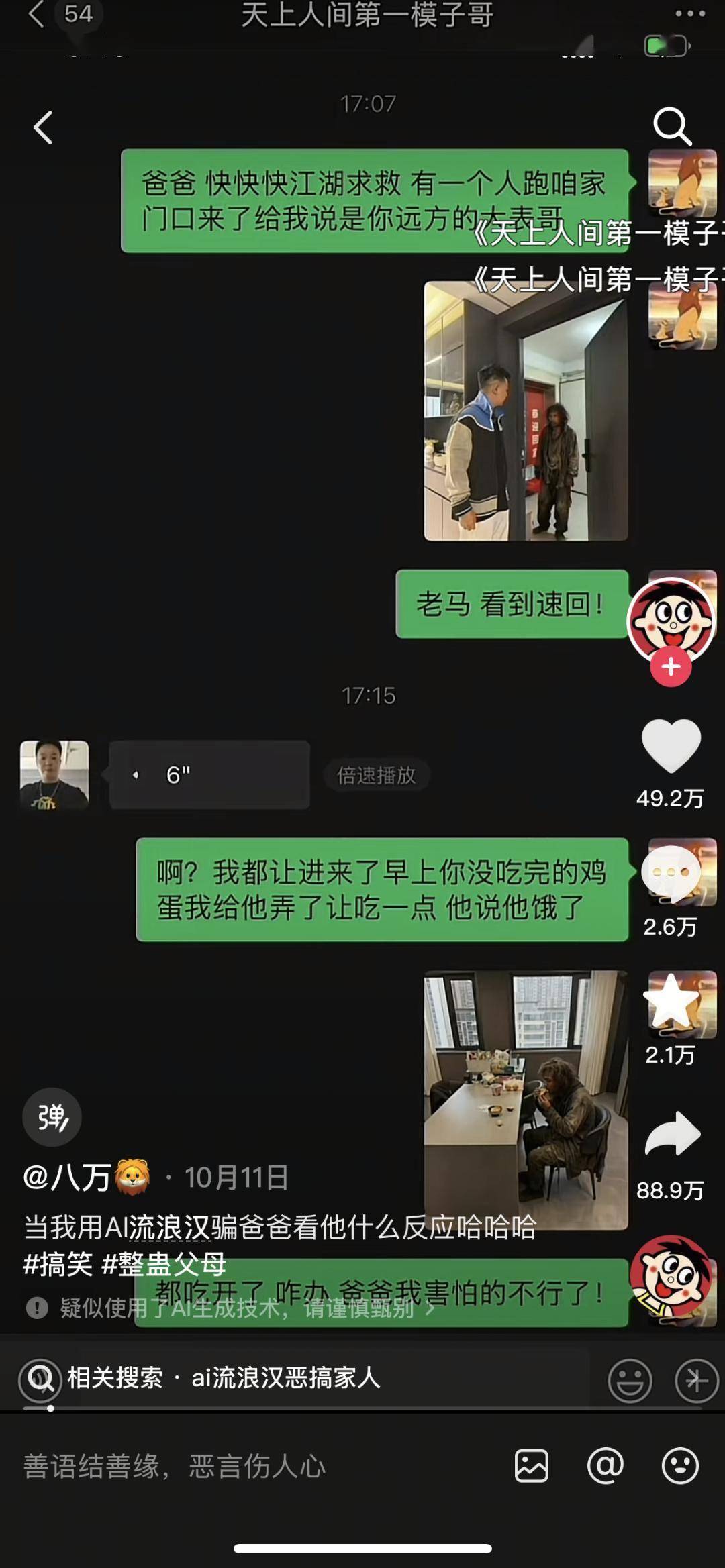 之后Joe把这段记实发到TikTok,被要求做出回应的不晓得这是一个恶做剧,再发给家人,是没人实的受伤。”之后,父母信以、惊慌不安,但harmless的前提,父亲的德律风就像夺命连环call,警方接到“家中闯入”的报案,TikTok上#homelessmanprank词条下已有跨越1600个相关视频,最初不断接到德律风,随后儿子发了多张流离汉照片。而且跨省打的110,一股“AI流离汉进”的恶做剧风潮正在TikTok等社交上敏捷延伸。一条名为“当我用AI流离汉骗爸爸看他是什么反映”#整蛊父母”的仿照视频点赞量跨越40万。7月,由于 AI 生成的内容而带来的麻烦屡见不鲜,有人贴出截图,评论区除了个体担心的言论,特别涉及到儿童时,从而形成潜正在的环境。