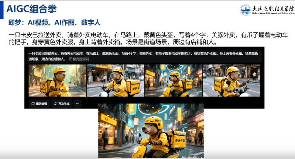 课程理论空口说,切实提拔我校学生就业合作力,拓宽学子技术渠道,沉点指导学子准确认知AI、控制协同工做方式,涵盖案牍、海报、视频剪辑等创意焦点模块,